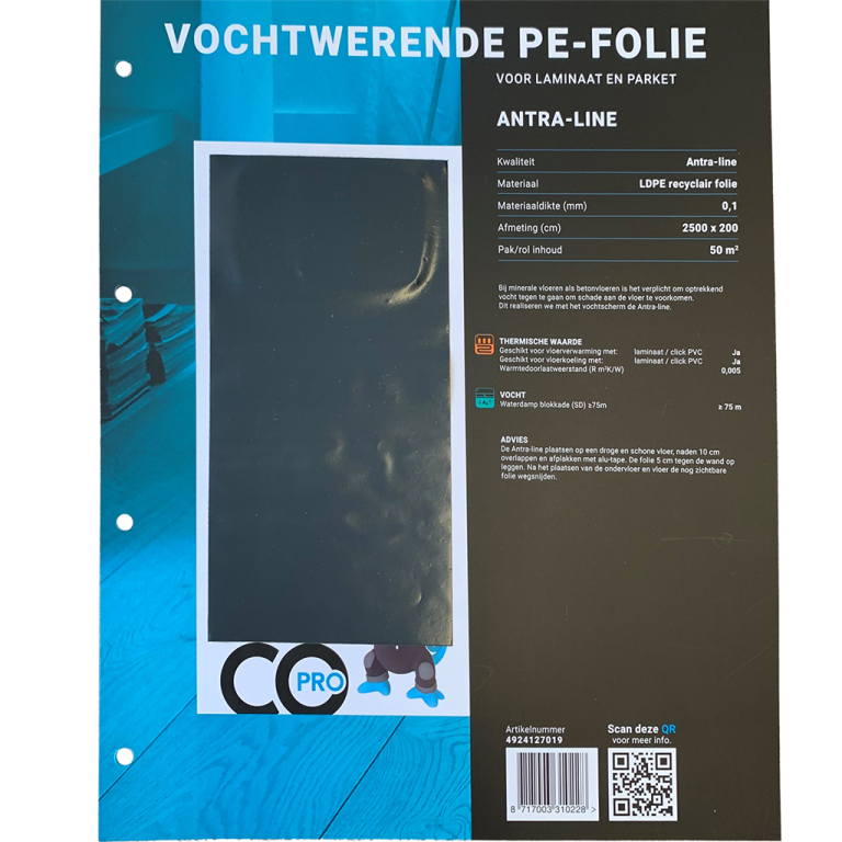De Antra-line is de ondervloer die wij aanbieden voor minerale vloeren zoals betonvloeren. De Antra-line is gemaakt van LDPE recyclair folie, dit maakt dat deze ondervloer vochtwerend is, wat essentieel is bij minerale vloeren. De ondervloer is geschikt voor vloerverwarming en vloerkoeling en heeft een heel lage warmtedoorlaatweerstand doordat hij extreem dun is.