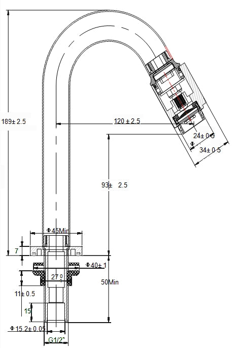 Zeer luxe, moderne toiletkraan met de straalbreker als bediening.