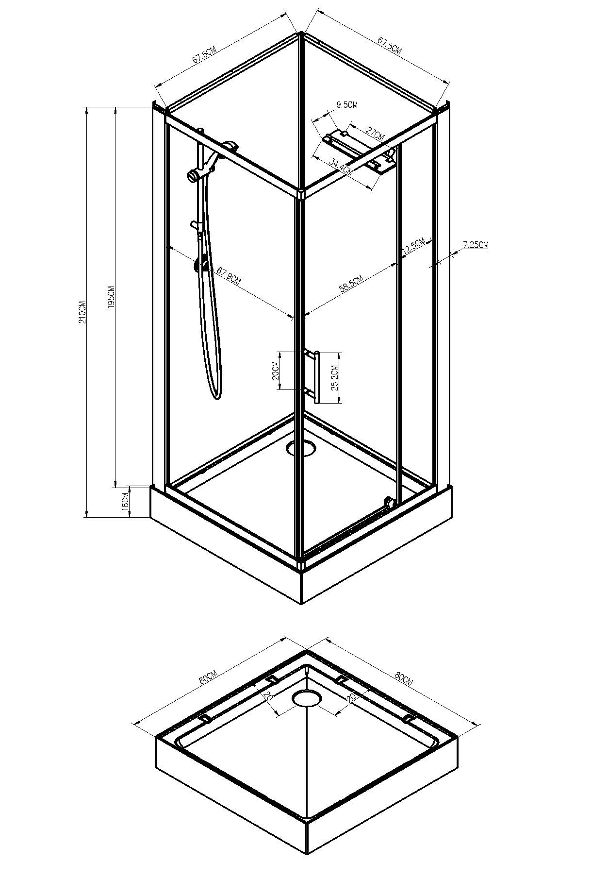 Hoogte douchebak: 15 cm