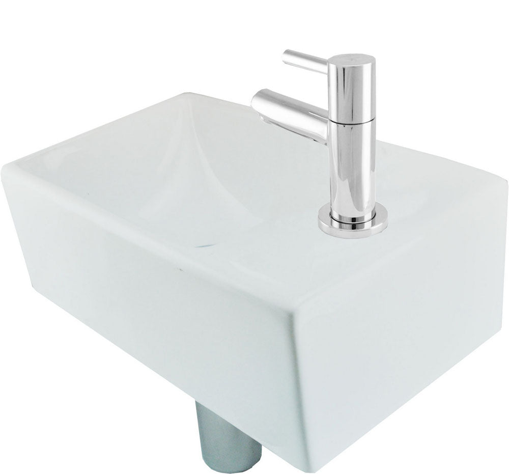 Fonteinset Rhea XXS met fontein rechts glans wit, kraan, sifon en afvoerplug chroom