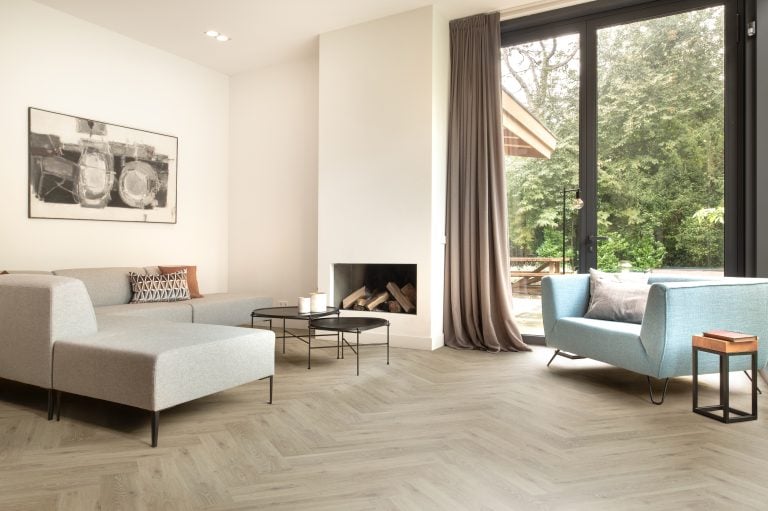 Deze vloer is gemaakt met een speciaal procedé dat opvallende herhalingen van het beeld voorkomt. Bovendien is het oppervlakte zó bewerkt dat de structuur van het beeld precies terug komt in de bovenlaag. Je voelt echt de structuur, het patroon en de kleine onregelmatigheden. Bovendien zijn de vloeren extra mat, zodat de typische ‘kunststof’ glans van veel vloeren ontbreekt. Je moet echt van héél dichtbij kijken om te zien dat het geen echt beton of hout is, maar een PVC vloer met betonlook of houtstructuur.