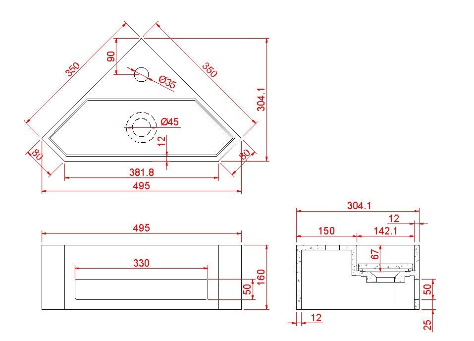 Julia hoekfontein 35 x 35 x 16 cm solid surface mat wit