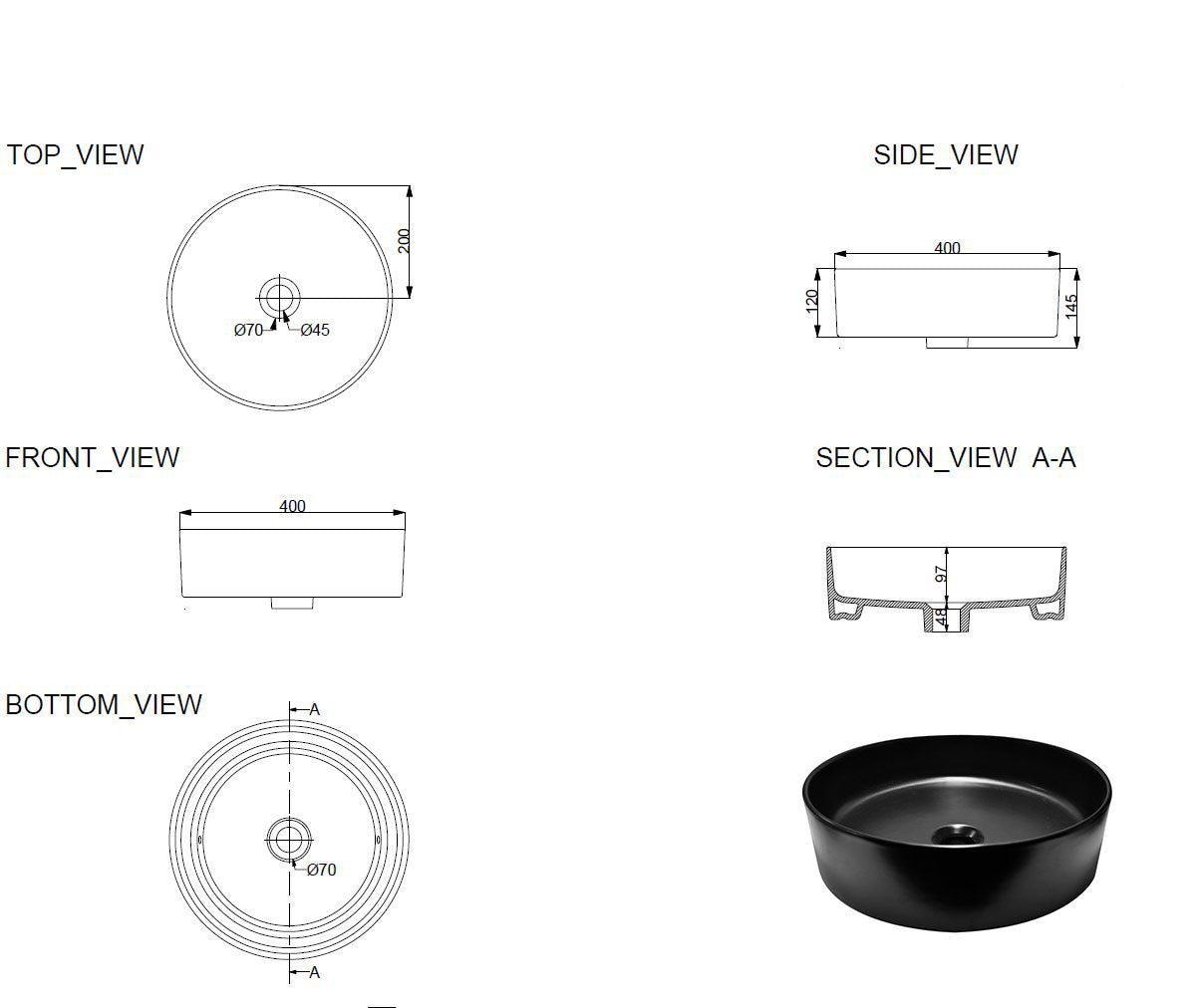 Link waskom rond 40 x 12 cm keramiek mat zwart