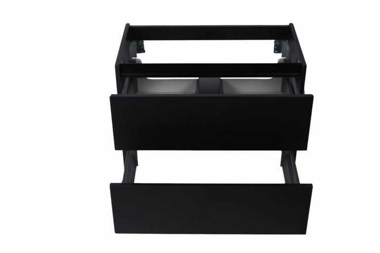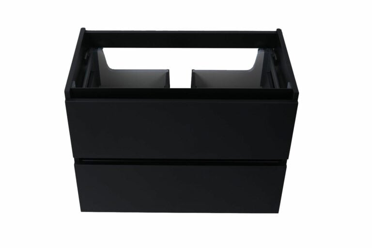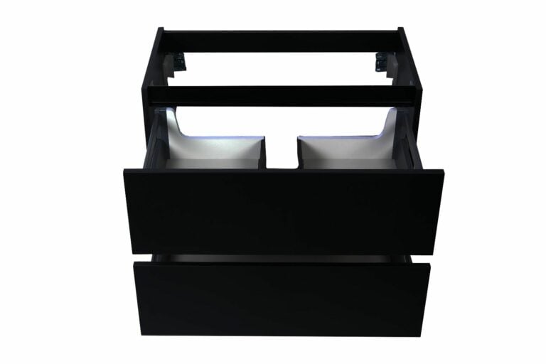 De mat zwart gelakte onderkast is gemaakt van MDF en heeft een strak en tijdloos design. De onderkast is niet alleen te combineren met een wasbak, maar ook met een topblad met waskom. De twee lades zijn voorzien van een Soft-Close systeem. Dit zorgt ervoor dat de lades altijd rustig sluiten. De onderkast heeft vier bevestigingspunten wat als voordeel heeft dat ook de zwaardere bladen prima bevestigd kunnen worden op de onderkast.