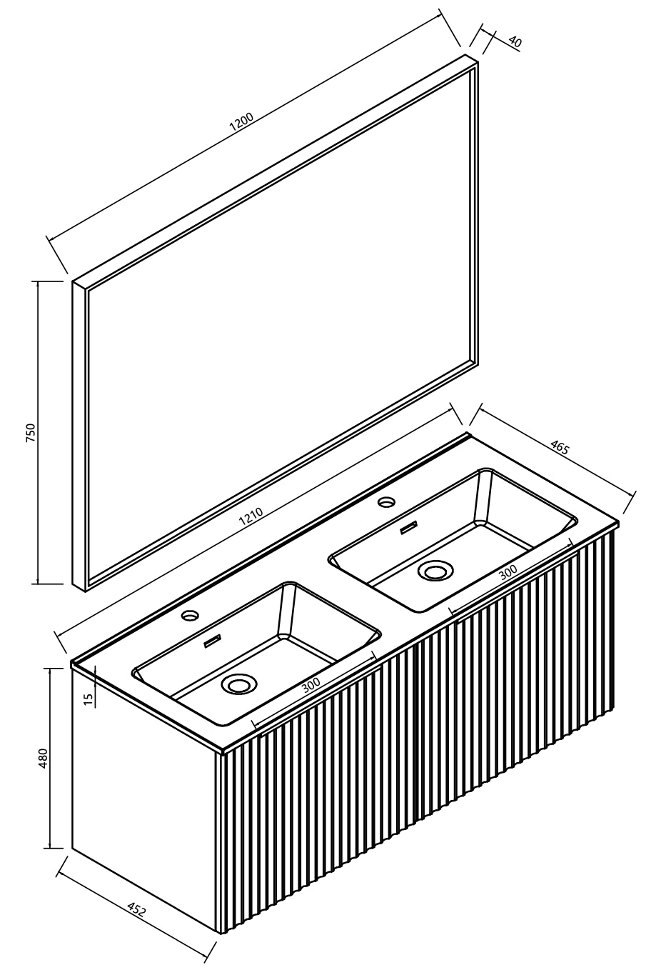 Ribbella badmeubel compleet 120 cm naturel eik/mat zwart