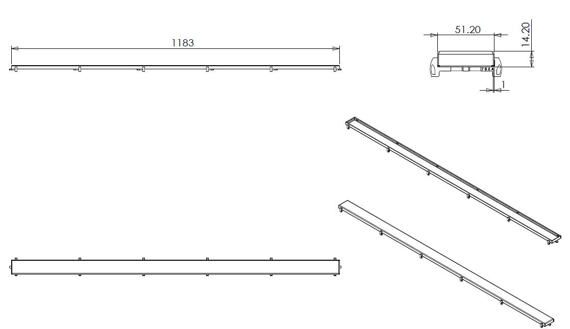 Tegelrooster voor douchegoot 120 x 7 cm RVS