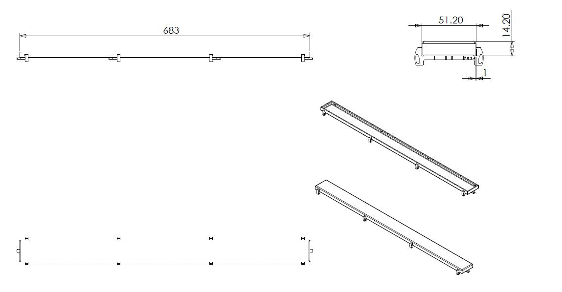 Tegelrooster voor douchegoot 70 x 7 cm RVS