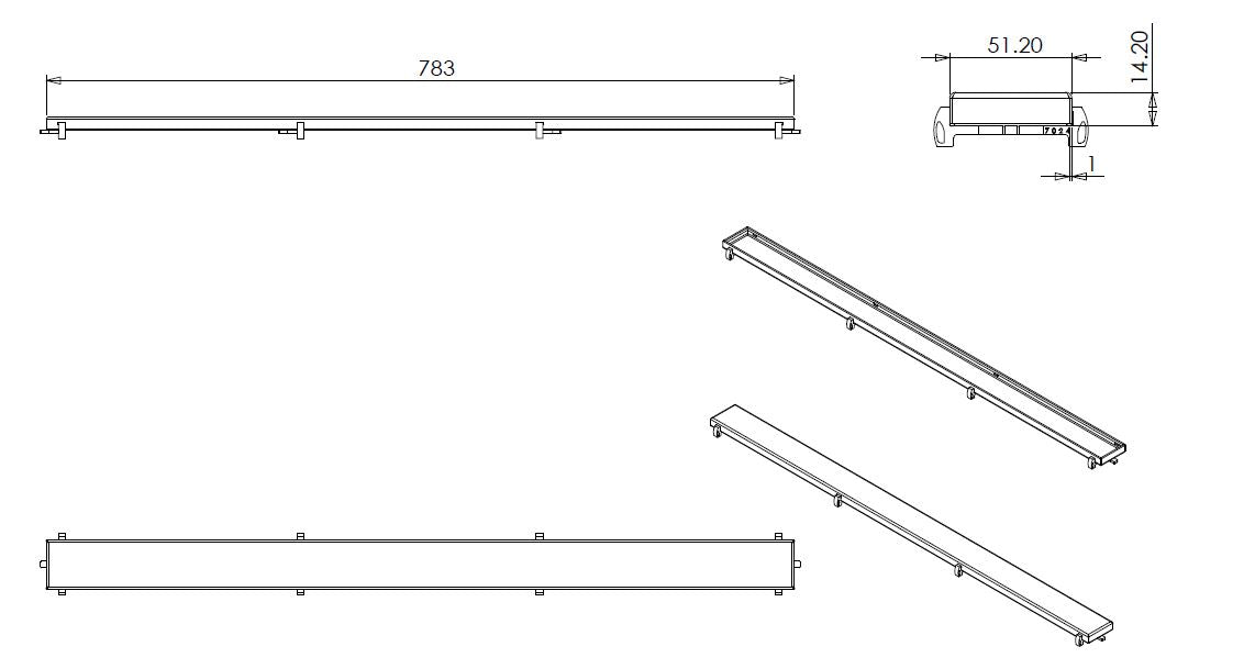 Tegelrooster voor douchegoot 80 x 7 cm RVS