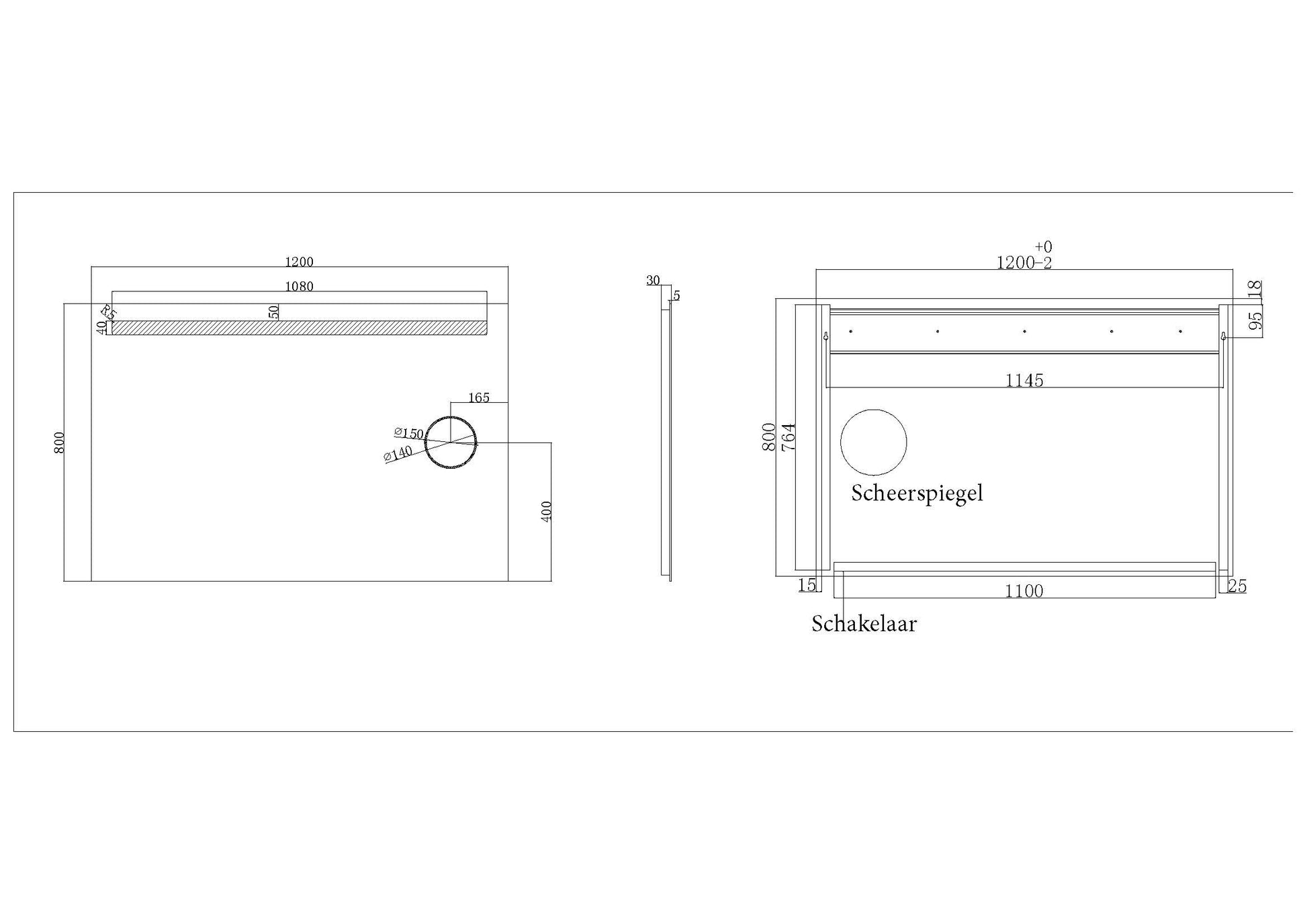 Tigris spiegel met led verlichting + scheerspiegel 1200x800