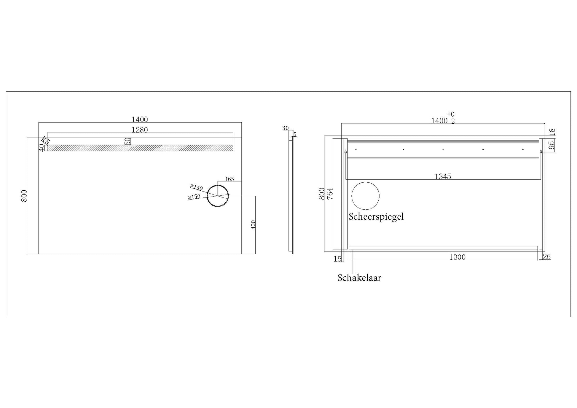 Tigris spiegel met led verlichting + scheerspiegel 1400x800