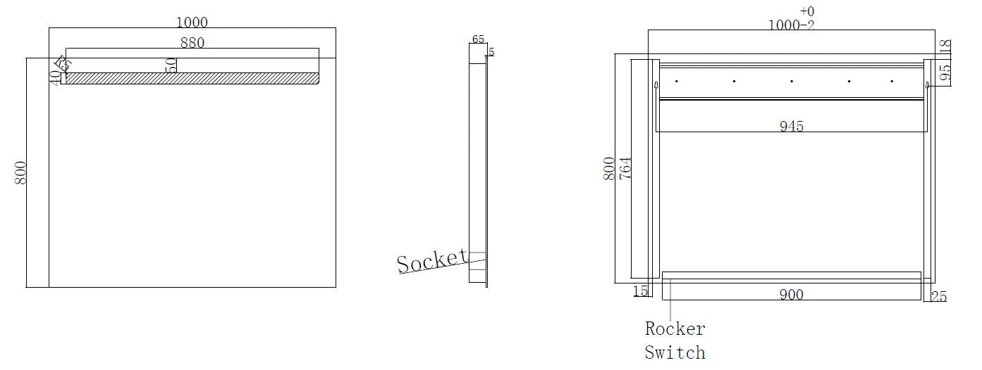 Tigris spiegel rechthoek met LED en stopcontact 100 x 80 cm