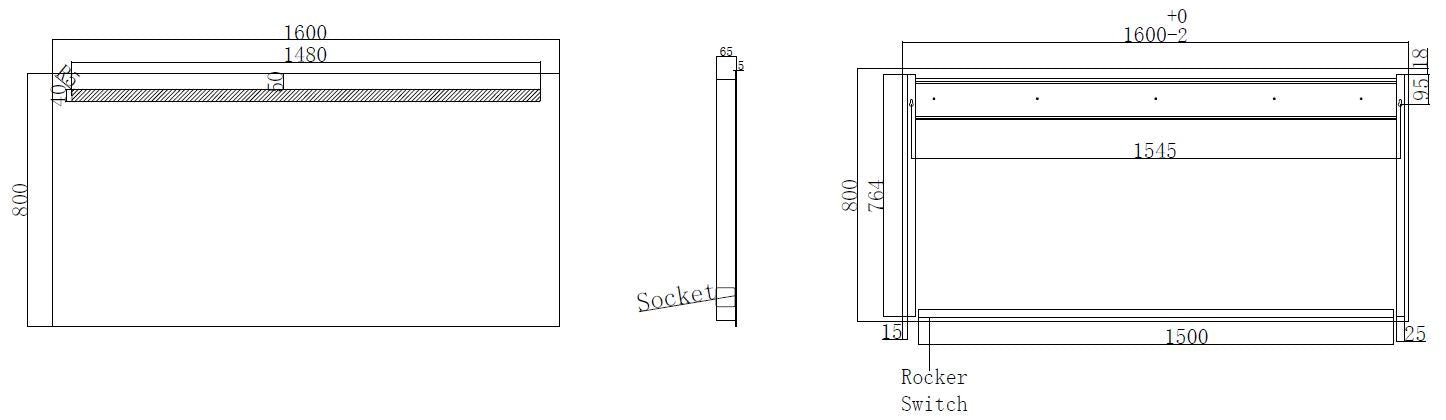 Tigris spiegel rechthoek met LED en stopcontact 160 x 80 cm