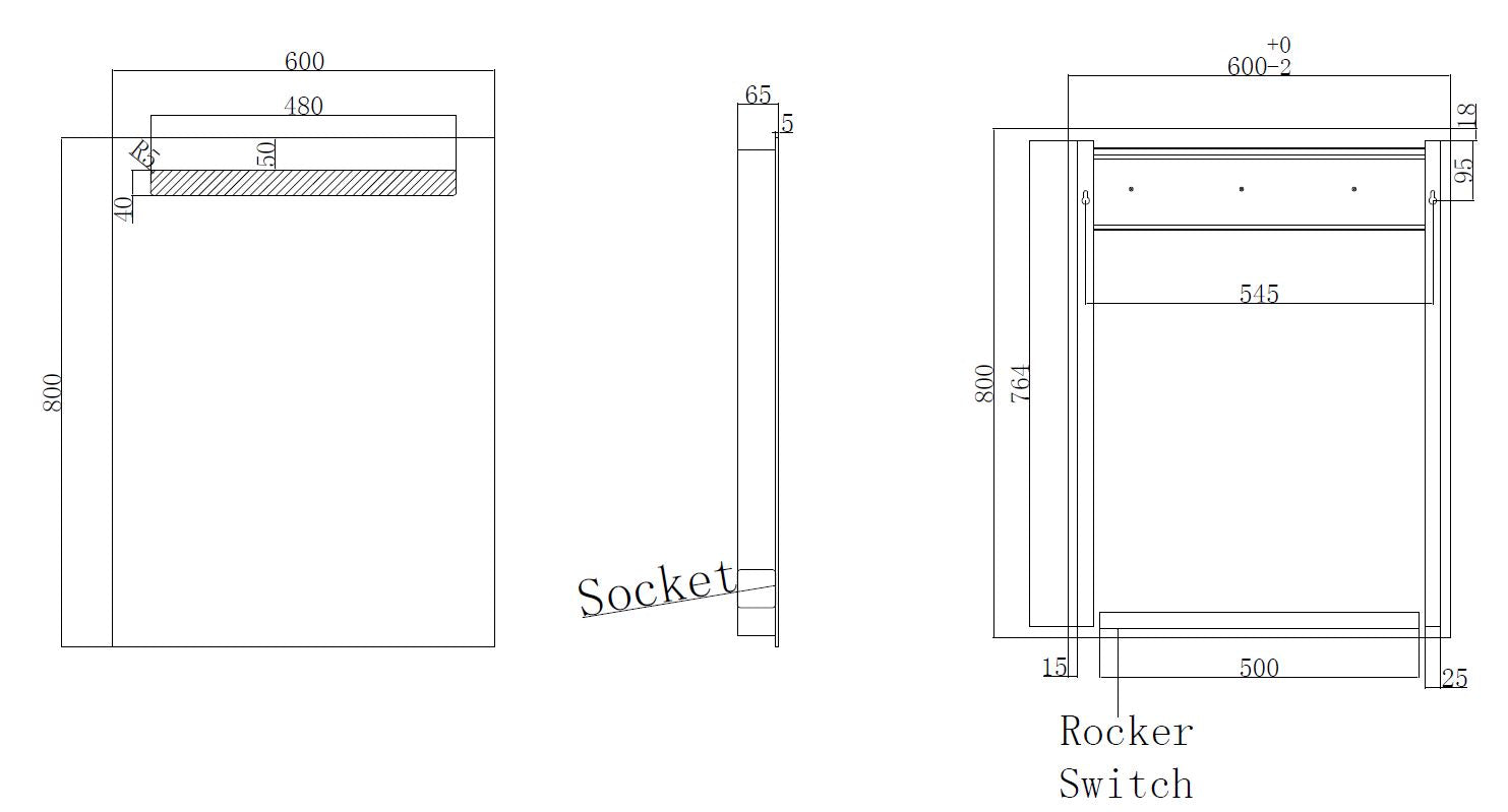 Tigris spiegel rechthoek met LED en stopcontact 60 x 80 cm