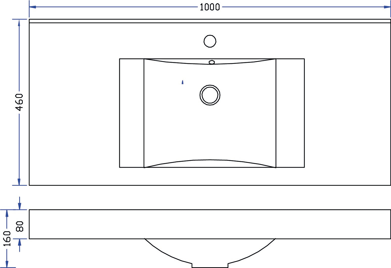 Tigris wastafel enkel met 1 kraangat 100x46x8 cm kunstmarmer glans wit