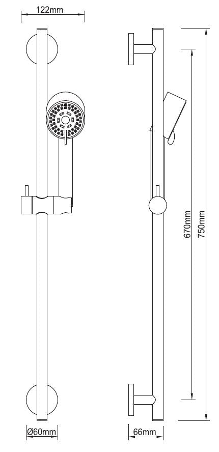 UniMatch Cadans glijstangset compleet met handdouche 3 standen Ø 8 cm mat zwart