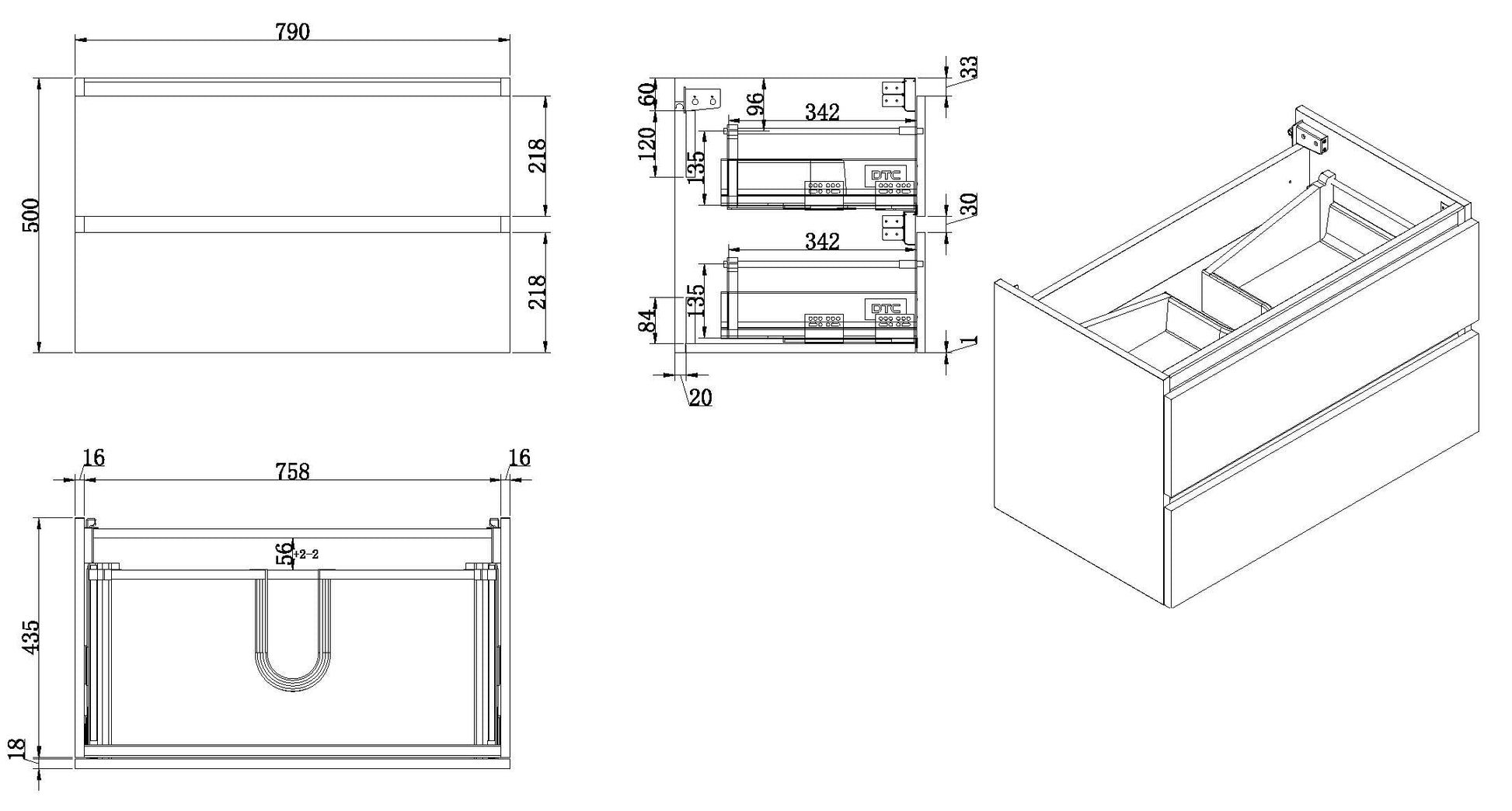 Vision onderkast met 2 laden 80 x 46 cm glans wit